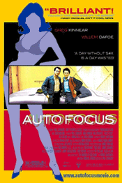 Now, if Schrader wanted to lift Crane from a pathetic loser, a fame junkie who got lucky once and sank back to obscurity, he would have picked a different actor and given him the Moment when he realizes What It's All About. But Schrader's approach -- for better or for worse -- is to keep Crane in his place. For that, Greg Kinnear is probably a smart choice. Mr. Kinnear gained fame at Talk Soup, a show that specialized in outtakes from talk shows, and he was perfect: non-threatening good looks with quick eyebrows and a perpetual wink. This was the kind of parody that a parodee cannot get enough of. From there, he leapfrogged Crane with a comedy series and went straight to the big screen, all without losing a wink. In physical terms, his depiction of Crane is right on; unfortunately, copying a surface isn't good enough for a serious film that Auto Focus claims to be, and, if we go one level deeper, we discover (sorry, Gertrude) that there is no there there.