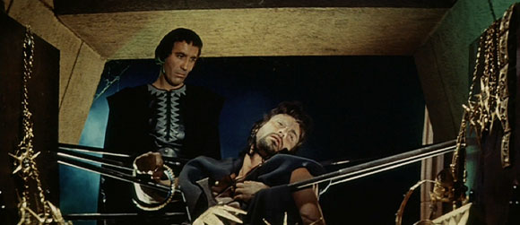 Christopher Lee as the evil Lyco kills a henchman who failed in his duties, from Hercules in the Haunted World.(© 2002 Fantoma Films. All rights reserved.)