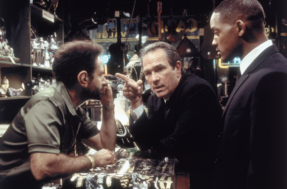 Tony Shalhoub, Tommy Lee Jones, and Will Smith in Men in Black II.(© 2002 Columbia Pictures. All rights reserved.)