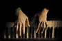 Separated from his family, Wladyslaw falls in with a handful of Jews left behind. They are doing backbreaking construction work and arming themselves for their last stand, and he does his bit in smuggling guns into the ghetto. But then he can't take it any more, so he leaves to place himself at the kindness of the Poles outside, in fact choosing to feed off his past celebrity. (A crooked member of his friends' network solicits funds around town -- and absconds with a "tidy sum" of money.) Obviously, moral indignity is preferable to physical one. He watches the Jewish revolt from the window of his hideaway with the same unchanged melancholic expression. Bravery is foolish, his stance says; survival is more important.