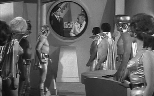 The Martians keep track of human reactions by using their nifty video monitor in Santo vs. the Martians.(© 2002 Kit Parker Films. All rights reserved.)