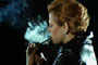 The film also engagingly celebrates the Fuller style: the use of quick close-up cut-ins to emphasize emotion and Fuller's reliance on varying degrees of contrapuntal edits. In the past, Fuller, like a tabloid reporter, quickly and freely moved within his three zones of writing: exposition, love, and violence. In Street of No Return, he continues this practice. The scene of the two Michaels is one such powerful counterpoint (expository, in the sense that we see who he was in the past, and also violent in that we now see how far he has been torn down). Perhaps the most vintage Fuller counterpoint occurs when Michael breaks off his business partnership with Rhoda (Andréa Ferréol). Arrogantly, he wants to abandon the four concerts she has booked for him so that he can run off with Celia. They argue, she challenges his selfishness, and then they make up, in a tender moment of love, apparently understanding each other. But when he says, in medium long-shot, his hands on her head, that he loves her like a mother, Fuller quickly switches to jarring hand-held medium close-ups as Rhoda with vicious verve repeatedly slaps Michael. Love and understanding do not last long in a Fuller film.