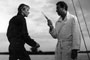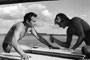 With a cast of just three actors -- no one else appears in the film -- Knife in the Water is marked by its silences and its precision. The movie wastes little time in establishing its conflicts. During the credits sequence, we see a man (Leon Niemczyk) and woman (Jolanta Umecka) in a car. They don't talk. They keep their eyes on the road. Soon the man becomes concerned with the woman's driving, even grabbing the steering wheel. Soon he takes over, and almost immediately they encounter a hitchhiker (Zygmunt Malanowicz) who forces cars to stop by standing in the middle of the road, not moving as vehicles bear down upon him. Soon the two men are set in opposition. The husband doesn't mind the hitchhiker's presence because it allows him to flaunt his superiority. He even asks the young man to accompany them on a day of sailing.