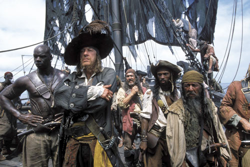 Captain Barbossa (Geoffrey Rush) commands the Black Pearl in Pirates of the Caribbean: The Curse of the Black Pearl.(© 2003 Disney Enterprises, Inc. and Jerry Bruckheimer, Inc. All rights reserved.)