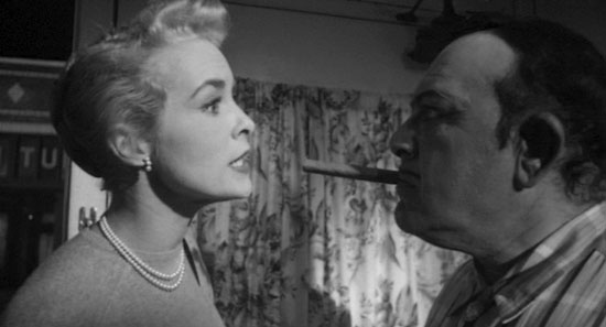 "Yeah? YEAH?" shouts Susie Vargas (Janet Leigh) to "Uncle" Joe Grandi (Akim Tamiroff). "Let me tell you something: You've been seeing too many gangster movies." Photo credit: © 1958 Universal Pictures Co., Inc. Renewed 1986 by Universal Studios. All rights reserved. RETURN TO ARTICLE