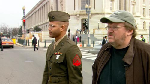 Michael Moore and Sgt. Abdul Henderson attempt to convince congressmen on Capitol Hill to send their children to war. From Fahrenheit 9/11.(© 2004 Dog Eat Dog Films. All rights reserved.)