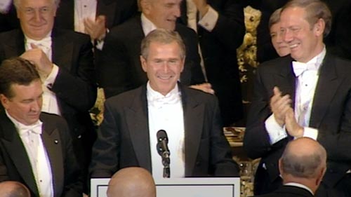 "This is an impressive crowdthe haves and the havemores. Some people call you the elite. I call you my base," says George W. Bush during a fund raiser. From Fahrenheit 9/11.(© 2004 Dog Eat Dog Films. All rights reserved.)