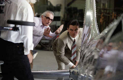 Director Martin Scorsese with Leonardo DiCaprio on the set of The Aviator.(© 2004 Miramax Films. All rights reserved.)