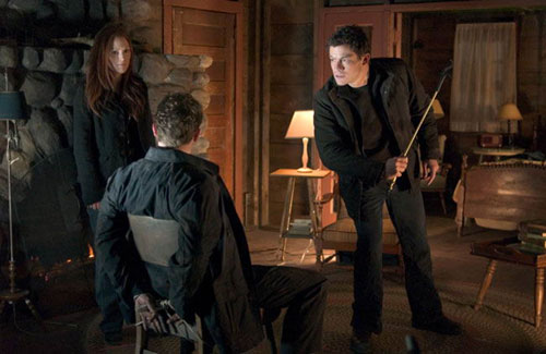 Telly (Julianne Moore) and Ash (Dominic West) confront one of their pursuers in The Forgotten.(© 2004 Sony Pictures. All rights reserved.)