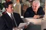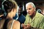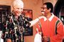 We get a pretty strong hint rightaway that lack of talent may be largely to blame. Bowfinger reads a screenplay for an absurd sci-fi/action movie called "Chubby Rain" and he gets all misty-eyed. He thinks the script's final words--"Got you suckas!"--are profound. No, Bowfinger isn't simply a victim of the capricious fates. He's a victim of his own marginal abilities. However, his failures haven't dampened his lust for success. Because he's oblivious to the hopelessness of his own situation, he's willing to take enormous risks. For example, when he can't secure a big name star for his movie, he decides to film dialogue scenes surreptitiously without the actor's knowledge. While the action star--Kit Ramsey (Eddie Murphy)--tries to eat lunch, Bowfinger sends in actors to confront Ramsey and spout nonsensical lines about alien invaders. Bowfinger's camera captures the ensuing confusion.