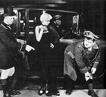 Jean Harlow, just seconds before she loses her dress, in "Double Whoopee." Stan and Oliver play a footman and a doorman at a posh hotel.(© 1998 Hal Roach Studios. All rights reserved.)