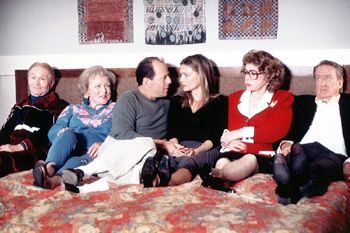 Red Buttons, Betty White, Bruce Willis, Michelle Pfeiffer, Jayne Meadows, and Tom Poston in The Story of Us.(© 1999 CR Films, LLC. All rights reserved.)