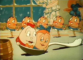 In "Humpty Dumpty," Humpty Jr. and the Easter Egg sing "Spoonin' in a Spoon" while a chorus line of dancers kick up their legs. (© Celebrity Productions, Inc. Renewed by Film Preservation Associates. All rights reserved.)