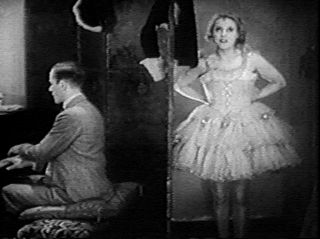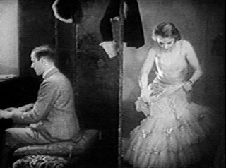 When Crewe urges Alice to try on a ballet outfit, she agrees. She changes behind a screen while Crewe plays a romantic song on a piano.(Photo credit: © 1929 British International Pictures.)