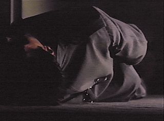 Swann writhes in agony before finally falling on his back, plunging the scissors further yet into his body.(Photo credit: © 1954 Renewed © 1981 Warner Bros. All rights reserved.)