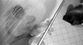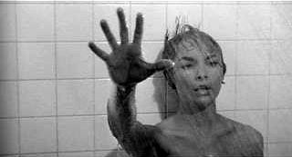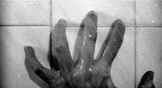 Marion slides down the bathroom wall. She reaches out to us but we cannot help her. Her hand finds the shower curtain, which rips away as she slumps forward. (Photo credit: © 1960 Shamley Productions, Inc. Renewed © 1988 Universal City Studios, Inc. All rights reserved.) |