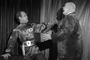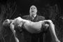 Subversion is the film’s driving force, and Wood does it with style. Nothing here is what we expect, or what narrative demands. The graveyards have plastic headstones, paper mausoleums, and sticks for crosses. A simple sequence of driving from a police station to the cemetery becomes an existential nightmare as the sky shifts willy-nilly between day, dusk, and darkest night over the course of the drive. Two old gravediggers are "attacked" by the "ghoul woman" played by Vampira; but typical of Wood, there’s no tangible connection between the two. The gravediggers are standing in daylight; the ghoul woman (allegedly a few feet away) is in a pitch-black cemetery. She holds her hands up and shakes her fingers suggestively, which is apparently enough to send the gravediggers screaming to their doom. Wood excels at this unique manipulation of space, having characters talk to each other -- or do violence to each other -- from seemingly unrelated spaces, an effect that’s both comic and disturbing.
