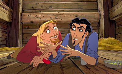 Miguel listens as Tulio presents his plan to escape from the brig on Cortes’ ship in The Road to El Dorado.(© 2000 Dreamworks L.L.C. All rights reserved.)