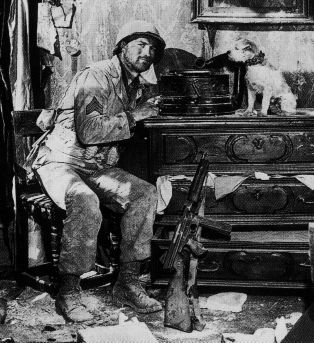 Sergeant Warnicki (Freddie Steele) searches for a phonograph so he can hear the recorded voice of his baby son in Story of G.I. Joe.(© 2000 Image Entertainment. All rights reserved.)
