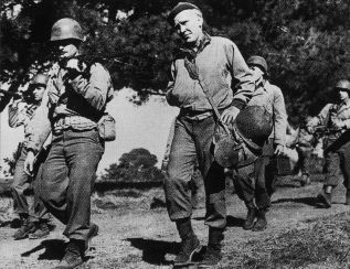 Ernie Pyle (Burgess Meredith) walks beside American soliders as they head toward Rome in Story of G.I. Joe.(© 2000 Image Entertainment. All rights reserved.)