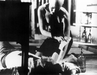 In the opening scene of The Naked Kiss, a hooker (Constance Towers) beats her pimp and takes the money that he owes her. Her wig comes off during the struggle, revealing her bald head.