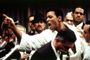 As a traditional bio-pic, Ali is far too unfocused and sprawling. The movie is based upon an original screenplay by Stephen J. Rivele and Christopher Wilkinson that covered the entirety of Ali’s life from childhood to present day. Mann, who co-wrote the revised screenplay with Eric Roth (all four writers are credited), is overly ambitious and the result is a movie that starts out as African-American social history, becomes a bio-pic, and ends as a fight picture. It succeeds only at the first. We catch glimpses of a Harlem with a vibrant nightlife and a thriving middle class. The people are in the grips of various upheavals – civil rights, Islamic militancy – and the energy of the times is conveyed through song and faithful re-creations of key events. When Malcolm X is gunned down, the entire city is reduced to tears. The black movement, as depicted by Mann, is a confused animal being pulled in all different directions. By the time Don King shows up on the scene promoting Ali’s comeback fight in Kinshasa, Zaire, you know the entire movement is in trouble.