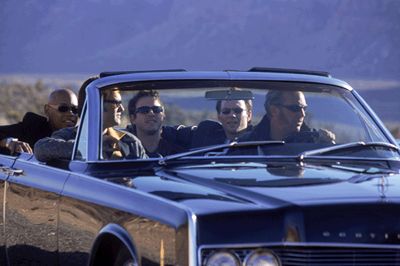 Bokeem Woodbine, Kurt Russell, David Arquette, Christian Slater, and Kevin Costner in 3000 Miles to Graceland.(© 2001 Warner Bros. All rights reserved.)
