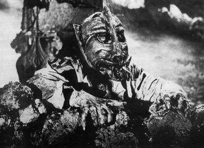 Igor Jabuvitch, with a torture mask still attached to his face, claws out of his grave in Black Sunday.