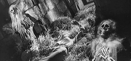 A young woman discovers a hidden chamber and then faints in I Vampiri.