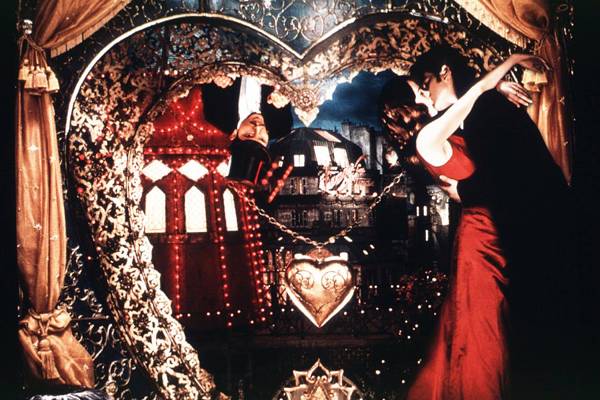 Nicole Kidman and Ewan McGregor embrace as John Leguizamo as Toulouse Lautrec looks on. From Moulin Rouge.(© 2001 Twentieth Century Fox. All rights reserved.)