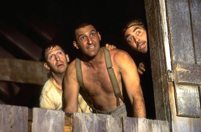 Delmar (Tim Blake Nelson, left), Pete (John Turturro, center), and Ulysses Everett McGill (George Clooney, right) in
