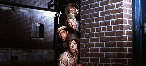 Top to bottom: John Turturro as Pete, George Clooney as Ulysses Everett McGill, Chris Thomas King as Tommy Johnson, and Tim Blake Nelson as Delmar in O Brother, Where Art Thou? (© 2000 Touchstone Pictures/Universal Studios. All rights reserved.)PREVIOUS | NEXT | RETURN TO REVIEW