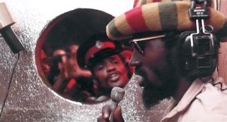 After Richard "Dirty Harry" Hall hijacks the DJ's booth at a local dance club and starts spinning reggae records, the police beat on the door and try to get him out. From Rockers.(© 1978 Rockers Film Corporation. All rights reserved.)