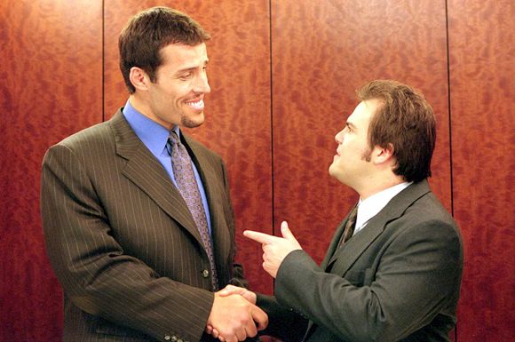 Hal (Jack Black) meets self-help guru Tony Robbins in Shallow Hal.(© 2001 Twentieth Century Fox. All rights reserved.)