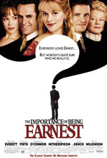 That last quotation about adultery, by the way, was from Wilde's most famous play The Importance of Being Earnest, first performed in 1895 and now newly adapted for the screen by director/writer Oliver Parker. It is spoken by aging bachelor and prince of idleness Algernon Montcrief (Rupert Everett). Algy, as he is called, lives a life devoted to verbal mischief and, like Wilde, takes enormous satisfaction from it. His ability to speak epigrammatically is shared by his close circle of friends and family, all of whom engage in conversation like pundits intent on matching wits. It is an elaborate game that gives them great pleasure. But it's a weary sort of pleasure: to appear to have too much fun, they would probably say, is the sign of an inferior intellect. Algy, for his part, need not worry about this. As played by Everett, he is the archetypal genius-past-his-prime, a man grown bored with the verbal swordsmanship of his youth and who is now searching for more ambitious game worthy of his age and experience. An opportunity soon presents itself in the form of his friend Ernest Worthing (Colin Firth). Ernest, we learn, is the guardian of a young country girl named Cecily, who knows him only as "Uncle Jack." To travel more often to London, "Uncle Jack" has invented a cousin Ernest whose ill health requires his constant attention. Thus in London he is Ernest, and in the country, Jack. Algy finds this whole situation delightful and sets about insinuating himself in his friend's carefully laid subterfuge. Ernest/Jack, meanwhile, sets his eyes on Algy's cousin Gwendolyn (Frances O'Connor), a privileged society girl and only child of the imperious Lady Bracknell (Judi Dench), who is Algy's aunt. This whirlwind of names, relations, and double identities is presented clearly and efficiently by director Oliver Parker who, having previously adapted and directed Wilde's An Ideal Husband, knows this world inside and out. He also knows what liberties he can take with the material. The famous scene in which Dench's Bracknell evaluates Ernest's worthiness for her daughter's hand is usually played out in one long scene set in a drawing room. But Parker, in an inspired departure, whisks us away mid-scene to Bracknell's palatial London estate, where she continues her interrogation perched upon her throne. Here, in her natural habitat, she takes on royal dimensions, dispensing her brand of conventional wisdom like divine proclamation. Dench, channeling her Queen Elizabeth from Shakespeare in Love, is the life of the party and, in making her drollness so contagious, ends up channeling more than a little bit of Wilde as well. Dench's delicate balancing act A more convincing Ernest can be found in the 1952 screen adaptation of the play directed by Anthony Asquith. Michael Redgrave plays Ernest/Jack as a fey social climber on the cusp of gentility. When his marriage proposal is rejected on account of his low birth, he has no choice but to return to the countryside. Redgrave plays repressed humiliation just right, always holding his nose a little too high and clenching his buttocks a little too tightly. It's a great comic performance, achieving the buffoonery that eludes Firth, and it doesn't falter when Michael Denison's Algy shows up posing as "Ernest," his reclusive (and non-existent) brother, in an attempt to woo Cecily. Agly's appearance inevitably throws Gwendolyn and Cecily into a state of confusion, and before long, the battle line between the sexes has been drawn. Husky-voiced Joan Greenwood creates a surprisingly complex Gwendolyn who is eager to shake off her spoiled society girl image and to seize control of her romantic destiny. Dorothy Tutin's Cecily is equally confident, having anticipated Algy's interest in her by conjuring in her diary an entire romantic world around her beloved "Ernest." The pleasure both women take in assuming the romantic initiative is one of the play's chief joys and is sadly absent from the newer film version. Reese Witherspoon might have created an intriguingly maniacal Cecily, but her efforts are scuttled by Parker who reduces her to an icon of feminine weakness, literally a damsel in distress. As Gwendolyn, Frances O'Connor lacks both presence and depth; her performance barely registers. This leaves Rupert Everett as Algy. A Wilde veteran (he starred in Parker's An Ideal Husband), Everett would seem to have the part nailed from the get-go, but something goes wrong. His languid, almost reptilian performance never quite reconciles itself to Parker's conception of Algy as an overgrown juvenile delinquent. So while Everett mopes about like a cad on the verge of a mid-life crisis, Parker sends him back to adolescence where he's either pulling jejune pranks or copping feels from dance hall girls. This fundamental disconnect becomes excruciatingly apparent later in the film when Algy falls for Cecily. Called on to mug romantic, Everett can barely muster a smirk. He might as well be rolling his eyes, so palpable is his contempt for the movie's shift from drawing room comedy to googly-eyed farce. Parker would have done better to cast Hugh Grant or Jeremy Northam as Algy, someone with both rakish intelligence and a knack for the well-timed aside. Either actor could easily navigate the improbabilities of Wilde's deus ex machina finale with, if not poise, calculated fluster. Alas, under Everett's half-hearted watch, Algy allows himself to be pushed to the sidelines like a chunk of comic dead weight. But to entirely blame the actors is unfair: Parker must share responsibility for the movie's pervasive blandness. It is he, after all, who too often tries to help the play along by punching up the musical score or zooming in on a bit of physical comedy. Laugh, dammit, he seems to say, but in the end, it's all futile gesture. Wilde is the last person who needs help. His dialogue needs to be worn lightly, or not at all, and Parker only wraps himself and his cast tighter and tighter in it. 