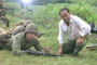 The movie lacks the details that would make the characters come to life. In place of convincing character traits and a well-considered sense of place, we get an embarrassing profusion of roiling orange explosions, severed limbs, and sprays of dirt and shrapnel. Woo loves explosions and he fills this movie with them. As usual for a Woo movie, his emphasis is upon action -- bodies flying through the air, rifles and cannons ejecting spent casings, and bullets ripping out chunks of human viscera. Woo loves the ingredients of the action sequence, and maybe no one in the history of cinema has shown such skill and grace while directing action movies. But when divorced of the gangster/crime milieu, Woo's filmmaking technique can quickly become strident and bombastic.