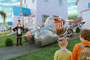 In the movie's favor, a large amount of the creative energy went into the art direction and special effects. So visually, The Cat in the Hat is a real stunner. Clouds spiral in the impossibly blue sky. Bright white houses rise abruptly from perfectly green, well-manicured lawns. Trees consist of stark, bare trunks that lead to globular clusters of leaves. The colors pink, yellow, light blue, and lime green predominate. Director Bo Welch was the production designer on Edward Scissorhands and Beetlejuice, so he knows about creating stunning visuals. But this movie needed a stronger guiding hand for the storytelling. We didn't need to know more about the mother. We didn't need to know anything about her troubles at work or about her boss. We didn't need to know anything about her boyfriend. All of these developments are utterly irrelevant.