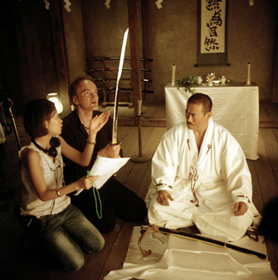 Quentin Tarantino with Sonny Chiba on the set of Kill Bill - Vol. 1.(Photo courtesy of Miramax Films.)