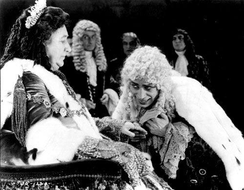 Josephine Crowell as Queen Anne and Conrad Veidt as Gwynplaine in The Man Who Laughs.(Photo courtesy of Kino International.)