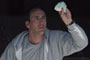 Now, in Matchstick Men, he tackles something else entirely a high-pitched drama of con-game manipulations mixed with the broadly played comedy of a father-daughter relationship. Nicolas Cage plays a con man named Roy who has a serious obsessive/compulsive disorder (a la Jack Nicholson in As Good As it Gets) who suddenly discovers he has a teenage daughter named Angela (Alison Lohman). We see he is so troubled by his estranged relationship with his wife and daughter that it becomes manifested in his behavior. He compulsively cleans every inch of his apartment, and all doors or windows must be opened in a repetition of three open ("un"), close, open ("deux"), close, open ("trey," he says). In spite of his avocation, in spite of the fact that he makes a living by bilking people out of money, we sense his extreme vulnerability and this helps him win over the audience in spite of his status as a criminal.