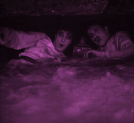 Ledoux (Arthur Edmund Carewe) and Raoul (Norman Kerry) face rising waters in The Phantom of the Opera.(© Milestone Film & Video. All rights reserved.)