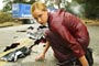 Edward Furlong, who originally played John Connor in T2, was signed to reprise his role; however, early in the filming process he was replaced with Nick Stahl, an emerging star who had previously scored big opposite Sissy Spacek and Tom Wilkinson in the emotional drama In the Bedroom. Stahl brings a different level of intensity to the role (he's less brooding than Furlong), but he serves as an attractive lead actor. Connor is living "off the grid." He works menial jobs where he can get by without a social security card or anything else that might be used to trace his presence. He lives the life of a hobo, hitchhiking around the country for fear the robots might one day discover his location and come calling again, as in T2.