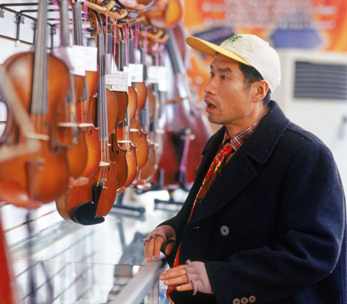 Liu Cheng (Liu Peiqi) examines instruments for his son in Together.(© 2003 United Artists. All rights reserved.)