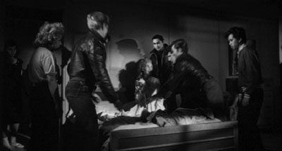 Touch Susie Vargas (Janet Leigh) is attacked by thugs at a motel in Touch of Evil. Later she's drugged and held at a hotel, where she finally escapes, naked, onto the fire escape. She's arrested and held in a prison cell until her husband, Mike (Charlton Heston), arrives. Photo credit: © 1958 Universal Pictures Co., Inc. Renewed 1986 by Universal Studios. All rights reserved. |