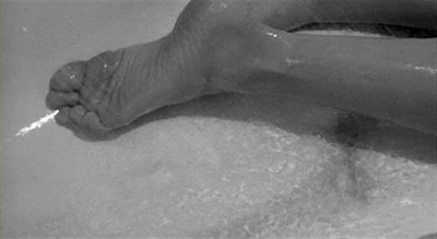 Psycho After she's attacked while showering, Marion Crane (Janet Leigh) slides down the wall, grabs the shower curtain, and slumps dead to the floor. Hitchcock's camera watches as blood swirls down the drain and then pulls back from her lifeless eye. Photo credit: © 1960 Shamley Productions, Inc. Renewed 1988 by Universal City Studios. All rights reserved. |
