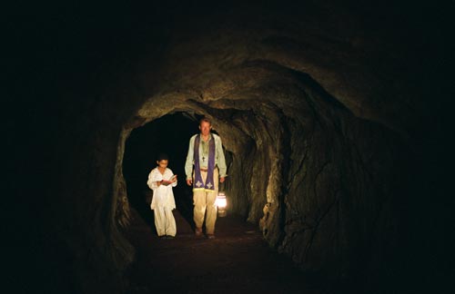 Remy Sweeney and Stellan Skarsgard in Exorcist: The Beginning.(© 2004 Morgan Creek. All rights reserved.)