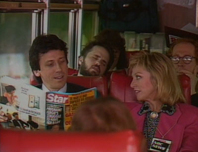 Richard Cox and Veronica Cartwright as reporters on the campaign trail in Tanner '88.(© 1988 Sandcastle Productions, Inc. All rights reserved.)