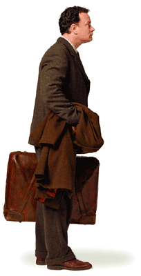 Amid smiles and excitement, an affable foreigner named Victor Navorski (Tom Hanks, incapable of being not nice, even when playing a killer-for-hire in Road to Perdition) arrives at JFK. Suddenly his passport and his visa are pronounced invalid. Turns out that while Mr. Navorski was aloft, his home country, the fictional Krakozia, had gone through a military coup. (Numerous CNN screens all over the airport keep running Wag-the-Dog-like footage of tanks on country roads and grannies in babushkas plodding through fields.) The US have not recognized the junta in power, and so Mr. Navorski is stuck: he can't enter the US and he has no country to go back to. The Federal bureaucracy is at a loss. I am prepared to suggest the character's name should be Victor N.