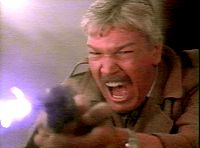 Tom Atkins takes action in Night of the Creeps.(©1986 HBO Video and Tri-Star Pictures. All rights reserved.)
