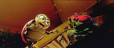 Francis becomes angry when two flies mistake him for a female lady bug in A Bug's Life.(©1998 Disney Enterprises, Inc./Pixar Animation Studios. All rights reserved.)
